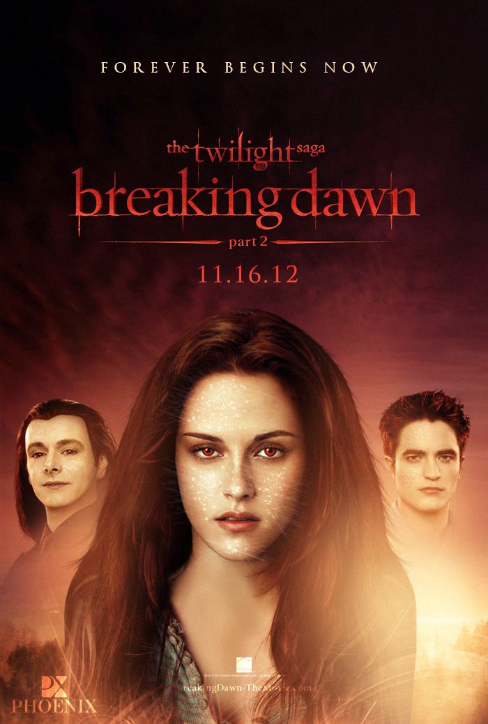 | Да ну ,Белла типо у нас теперь Мисс Вампирская Вселенная ?Гримеры и костюмеры это конечно без комментариев,такое чувство что половина персонажей перед встречей с Волтури сходило в парикмахерскую и сделало себе новые прически(бредово нет ),про Алека и Джейн вообще говорить не будут ,они были такие хорошенькие в Новолунии,а щас неизвестно что Итог:всех персонажей изменили ,отклоняясь от всей физиологии вампиров и от превидущих книг и фильмов